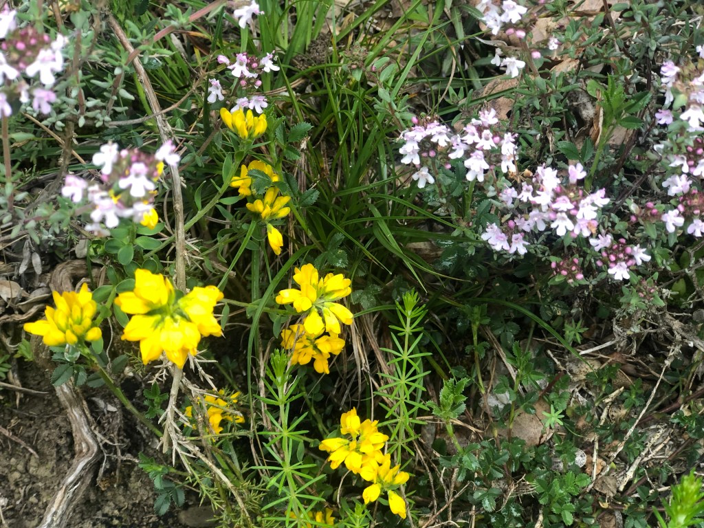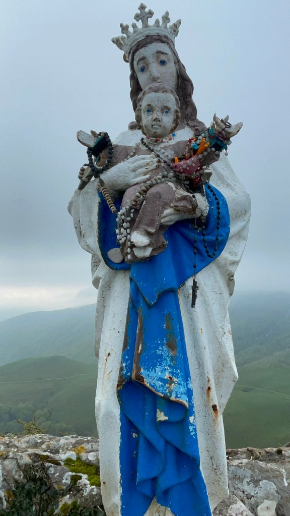 We have found the sacred in the morning light over the Pyrenees, the flowers of the mountains, gratitude for past protection, wild horses, flowers along the way, the crunch of the trail, and the beauty of the morning walk.